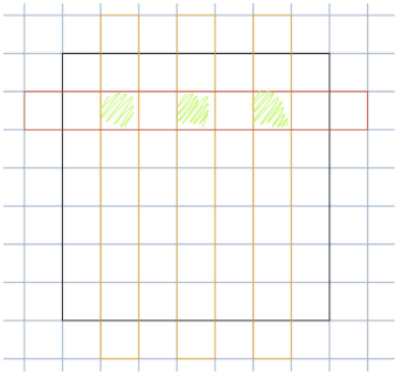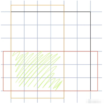 当前释放技能之前所有一列的技能与当前释放一行技能重叠的部分为绿色画出来的部分